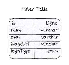 하루스터디 서비스에 소셜 로그인을 하게 되면 사용자는 ID를 갖게 됩니다. 그리고 이는 Member 테이블의 Primay Key입니다. 예를 들어 구글 로그인을 진행하는 경우에는 위 Member 테이블에 해당 사용자에 대한 행이 하나 생기게 됩니다.