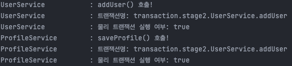 log.info("물리 트랜잭션 실행 여부: {}", TransactionSynchronizationManager.isActualTransactionActive());