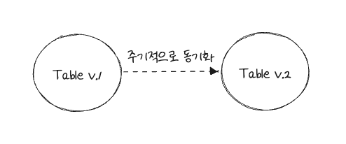 이렇게 트리거를 통해 신규 삽입되는 데이터는 적절하게 처리할 수 있었지만, 트리거가 적용되려는 시점에 삽입, 수정된 데이터는 어떻게 처리할 수 있을지 고민이 생겼습니다. 만약 이를 제대로 처리하지 못하는 경우, V1 테이블과 V2 테이블의 불일치가 발생하기 때문에 정합성에 어긋나게 됩니다.