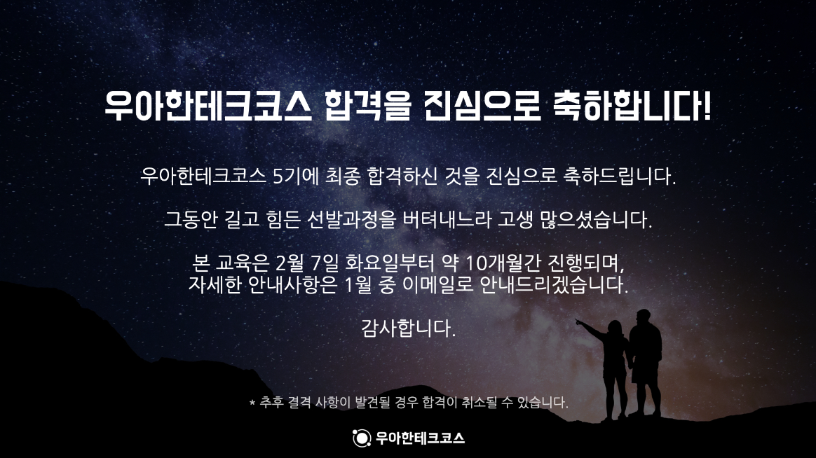 우아한 테크코스 5기 1차 심사에 합격했다..! 🥳