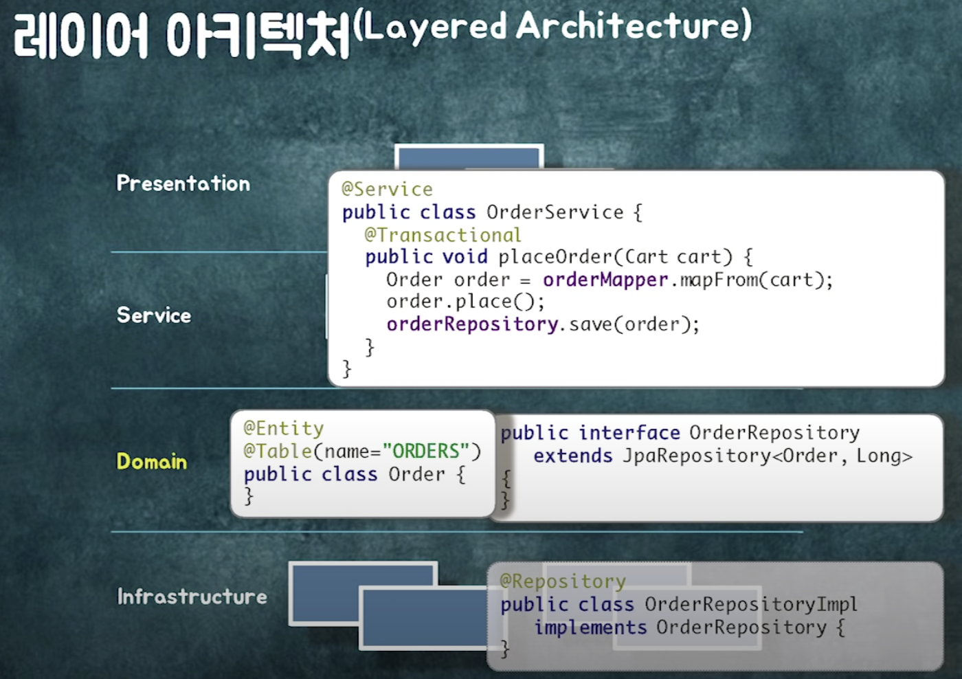 여태까지 이야기했던 개념들, 코드들은 Layered Architecture 상에서 Domain Layer에 속한다.
