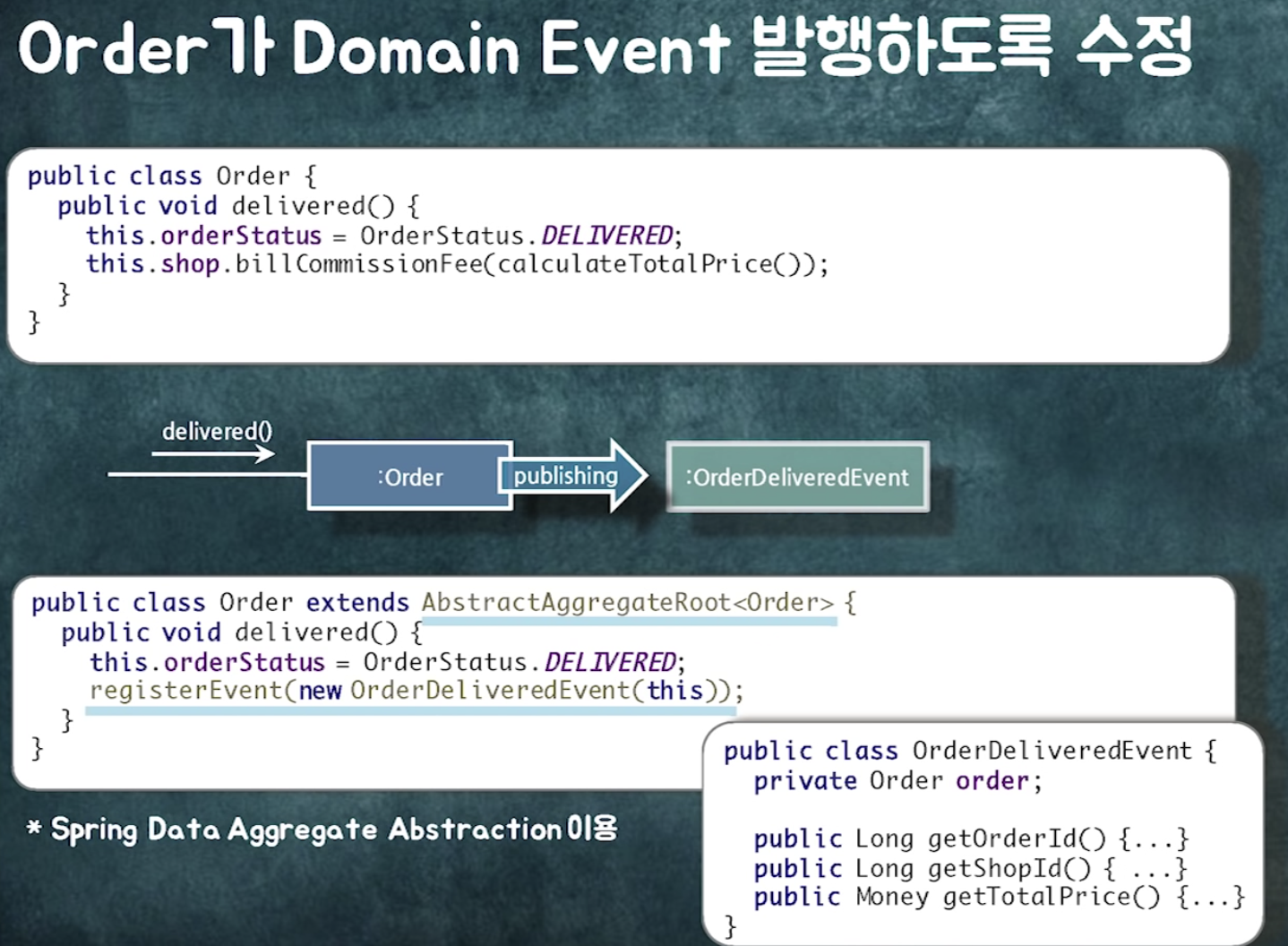 이번에는 도메인 이벤트 퍼블리싱을 통해 두 객체를 함께 바꾸는 방법을 생각해보자.