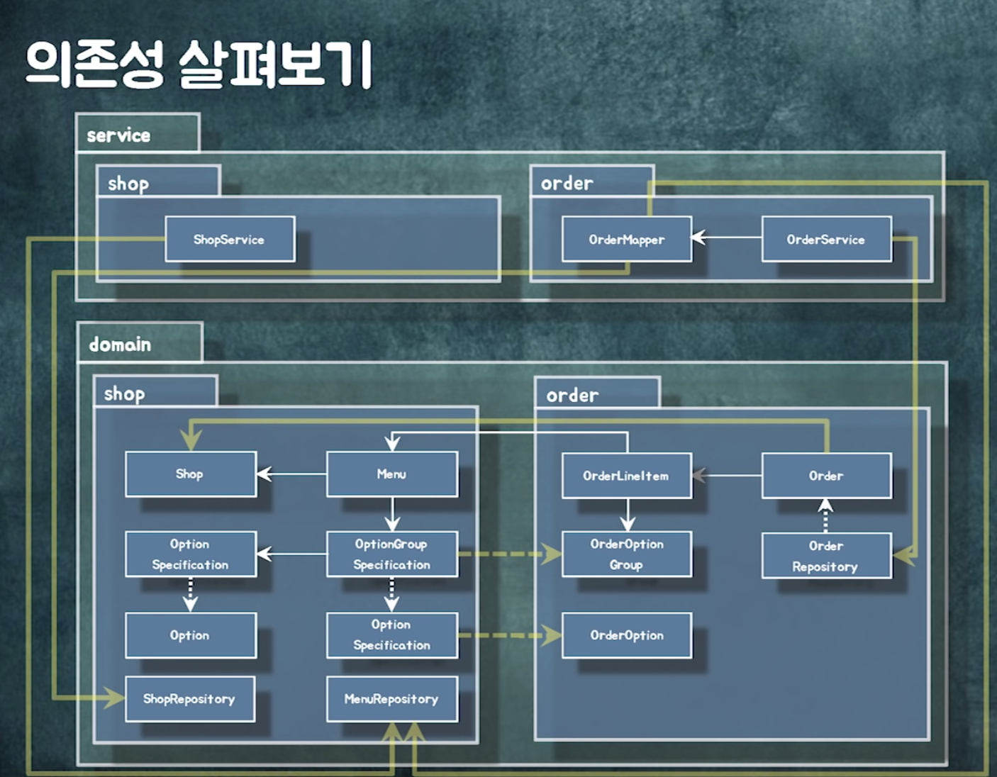 그리고 OptionGroupSpecification -> OrderOptionGroup 의존성도 존재했었음.