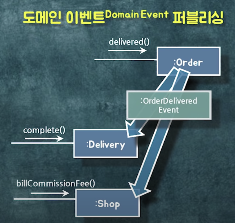 도메인 이벤트는 serivce의 개념과는 반대로 A -> B, C 가 실행되는 것을 원하긴 하지만 느슨하게 만들고 싶다면 사용한다.