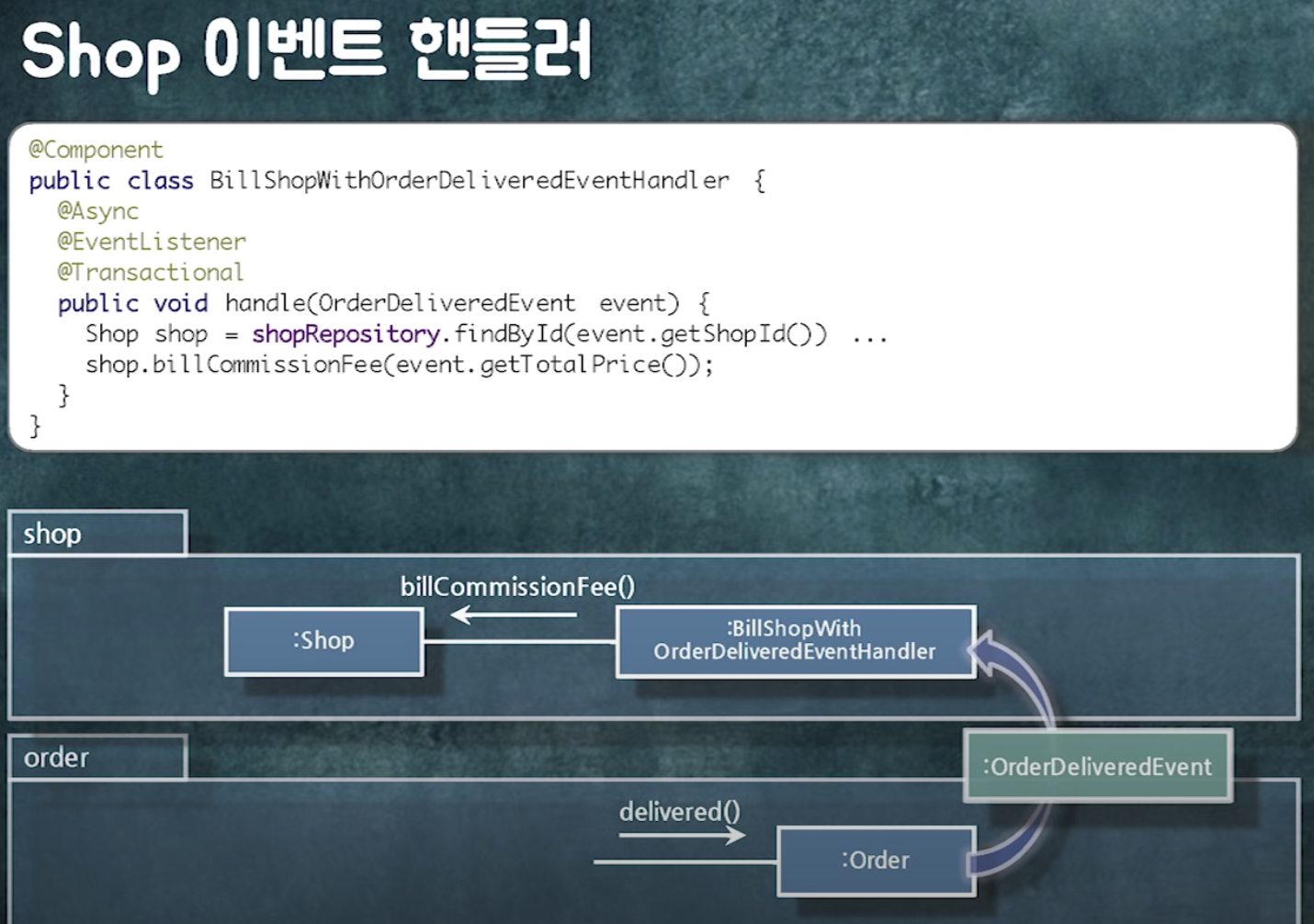 OrderEvent를 발행해서 상태를 바꾼다. 그리고 각각의 EventHandler가 요청을 받아 처리한다.