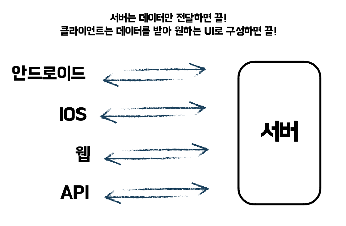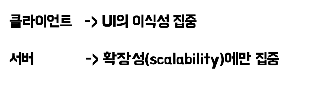 이렇게 관심사의 분리를 적용하면 클라이언트는 UI의 이식성에만, 서버는 확장성에만 집중할 수 있게 됩니다. 예를 들어 볼까요?