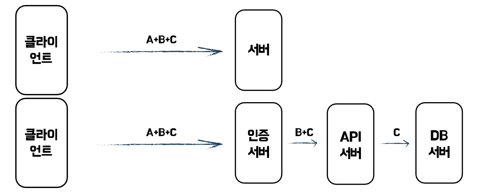 클라이언트가 A+B+C 라는 메세지를 보낸다고 한다면, 단일 서버 구조에서는 하나의 서버가 A+B+C 메세지를 모두 처리해야 하지만, 계층형 시스템으로 구성되어 있다면 인증서버는 A만, API서버는 B만, DB 서버는 C만 처리할 수 있게 됩니다. 즉, 복잡도를 획기적으로 낮춰주는거죠.