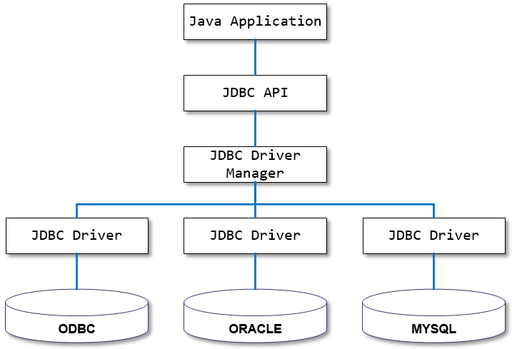 그리고 JDBC는 큰 장점이 있는데요, 바로 어떤 DBMS이든지 간에 동일한 인터페이스로 다룰 수 있다는 것입니다. 이런 메커니즘을 가능하게 하는 이유는 JDBC가 아래와 같은 구조이기 때문입니다.