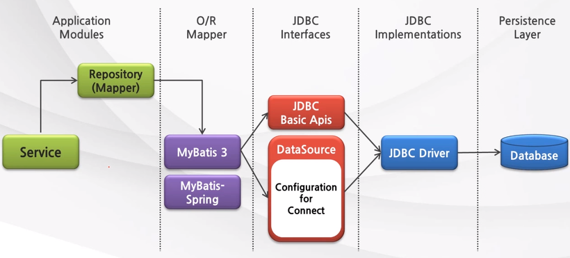 아래 그림을 통해 대표적인 MaBatis, Spring JDBC의 구조를 보겠습니다.