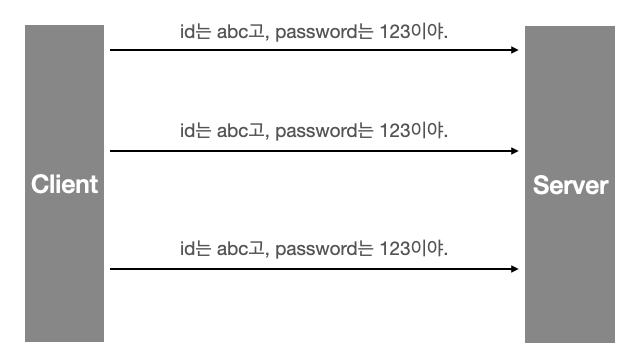 하지만 이런 무상태성이 단점으로 작용하는 때가 존재하는데요, 인증 기능이 포함된 서버와 통신을 한다고 가정해보겠습니다.