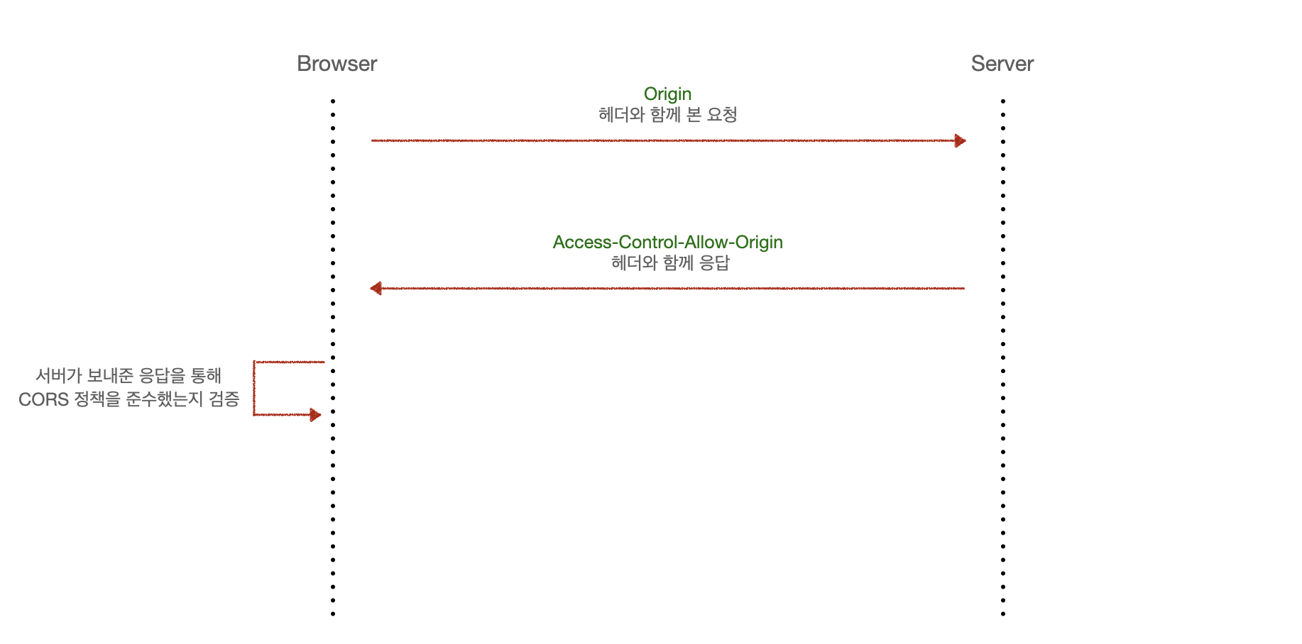 - 브라우저는 서버 응답과 요청의 Origin을 비교해서 다르다면 CORS 에러를 발생시킵니다.