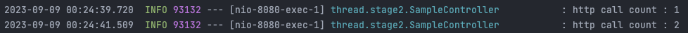 실행 결과를 보시면 총 두 개의 요청만이 처리되었음을 확인할 수 있습니다. 첫번째 요청은 maxConnections 값이 1이므로 바로 처리되게 되고, 두번째 요청은 운영체제 큐에서 대기하다가 첫번째 요청이 끝난 이후에 처리되게 됩니다.