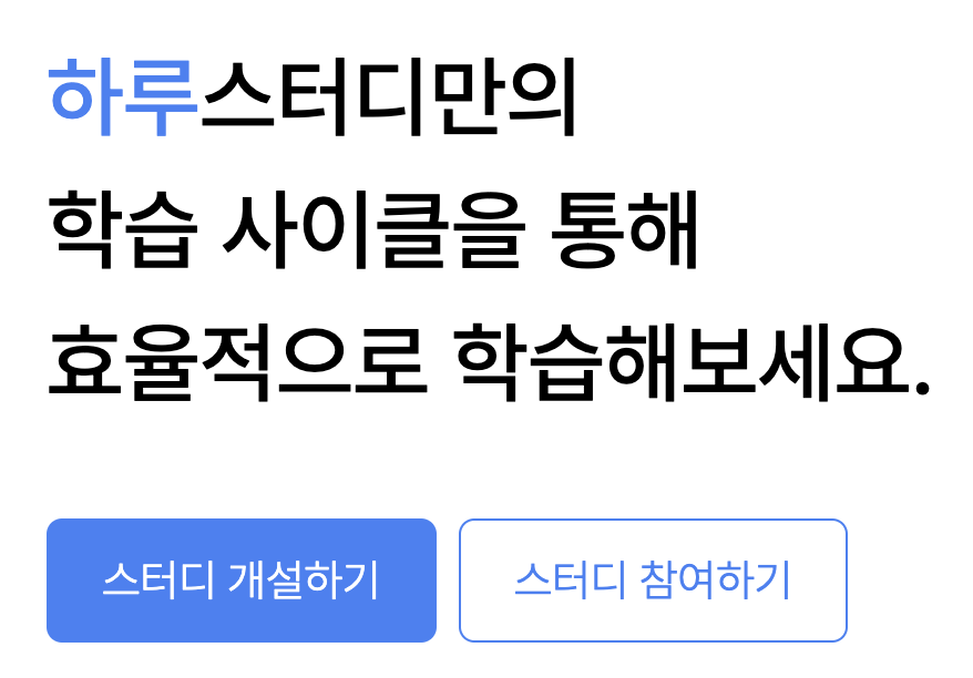 저희는 이런 사용자 이탈이 많이 발생하는 이유가 진입장벽이라고 생각했습니다. 하루스터디는 혼자서도 사용이 가능하지만, 혼자서 사용이 가능한지 여부를 사용자는 쉽게 알 수 없고, 랜딩 페이지에 도착하면 '스터디 개설하기', '스터디 참여하기' 버튼만 마주하게 되기 때문에 부담을 느낄 것이라 예상했습니다.