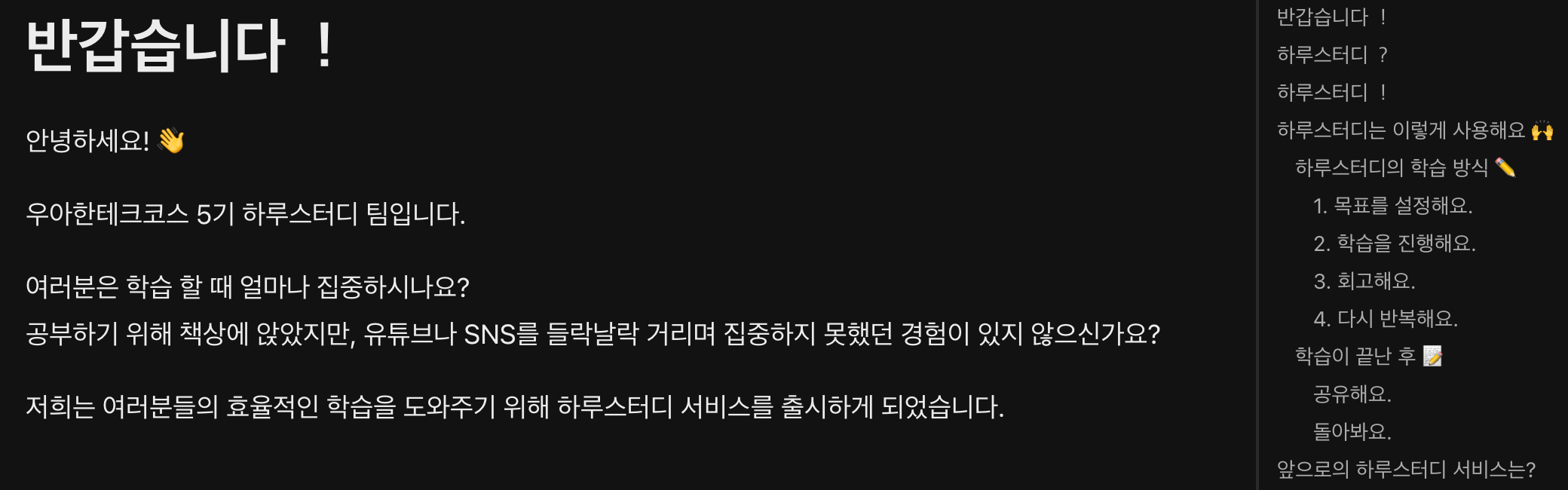 5차 데모데이를 마친 직후부터 하루스터디는 사용자 유치에 많이 집중하게 되었는데요, 이 과정을 기록하고 싶어 앞으로는 매주 사용자 유치에 과정과 결과를 회고 형식으로 작성할 예정입니다 😌