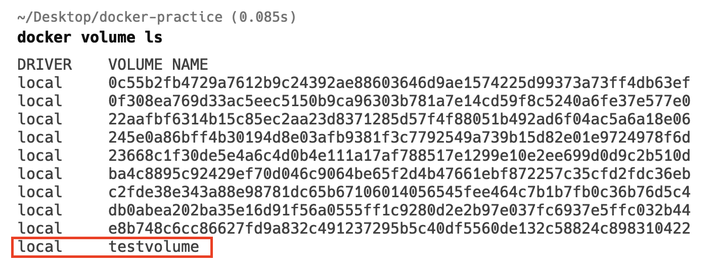 docker volume을 생성하고 컨테이너를 기동시켜 보겠습니다. 다음의 명령을 통해 도커 볼륨을 생성합니다. 그리고 'docker volume ls' 명령어를 통해 생성된 볼륨을 확인합니다.