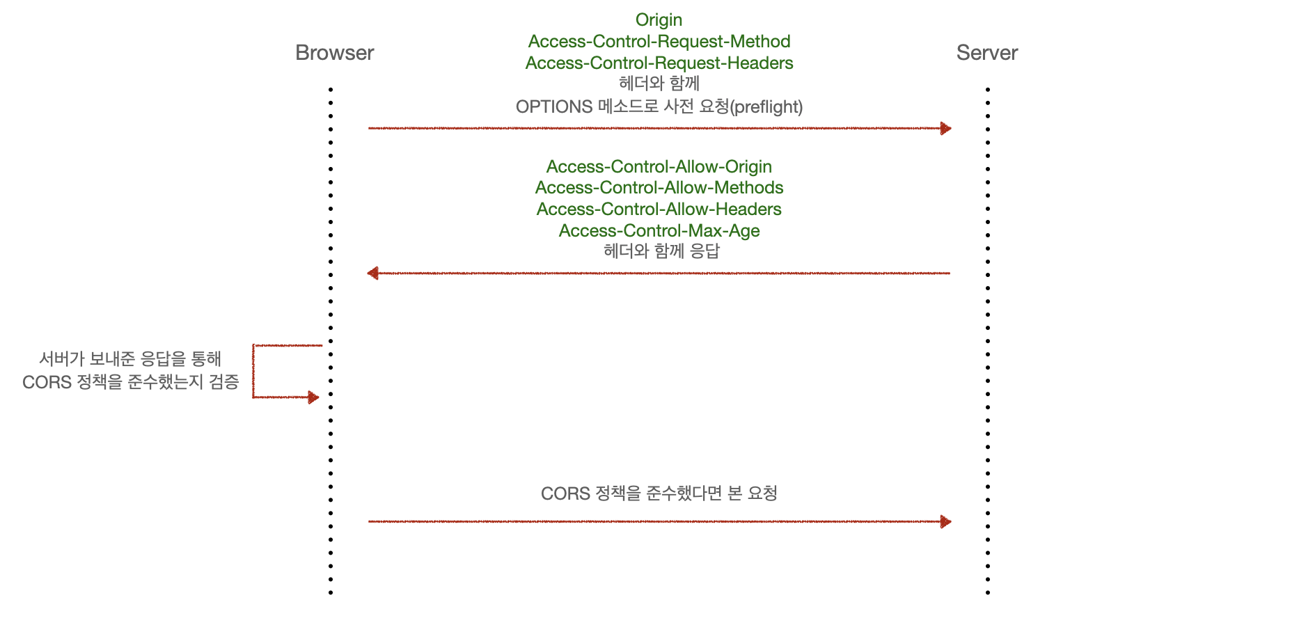 - 만약 요청이 안전하다고 판단되면 본 요청을 보내고, 그렇지 않다면 CORS 에러를 발생시킵니다.